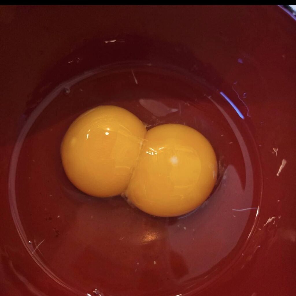 今日卵を割ったら久々に双子でしたヽ(^o^)